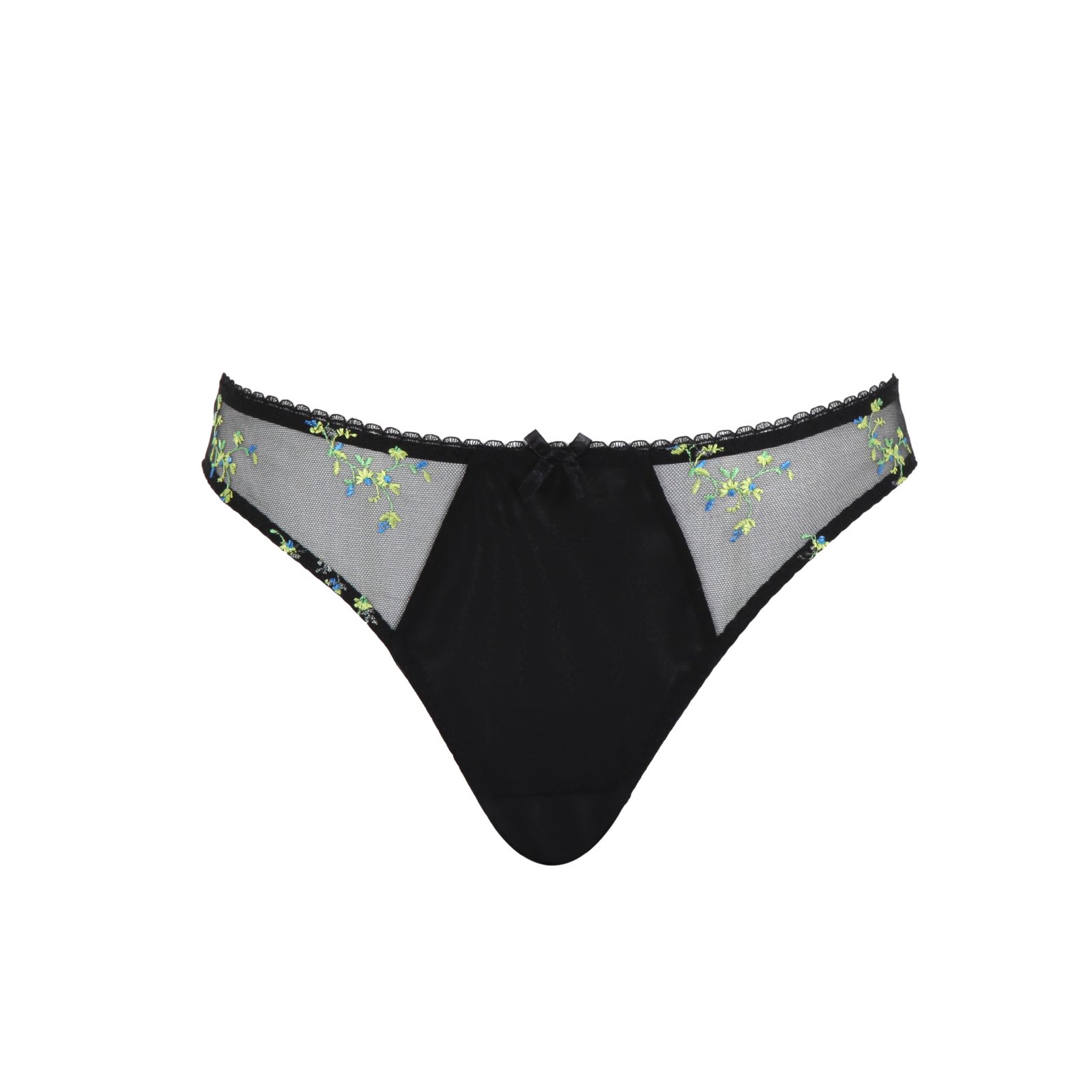 Com laterais bordadas e painel frontal em tule duplo, ela oferece transparência sutil e um toque de cor vibrante que traduz o espírito da coleção Meadow — elegante, alegre e feminina.